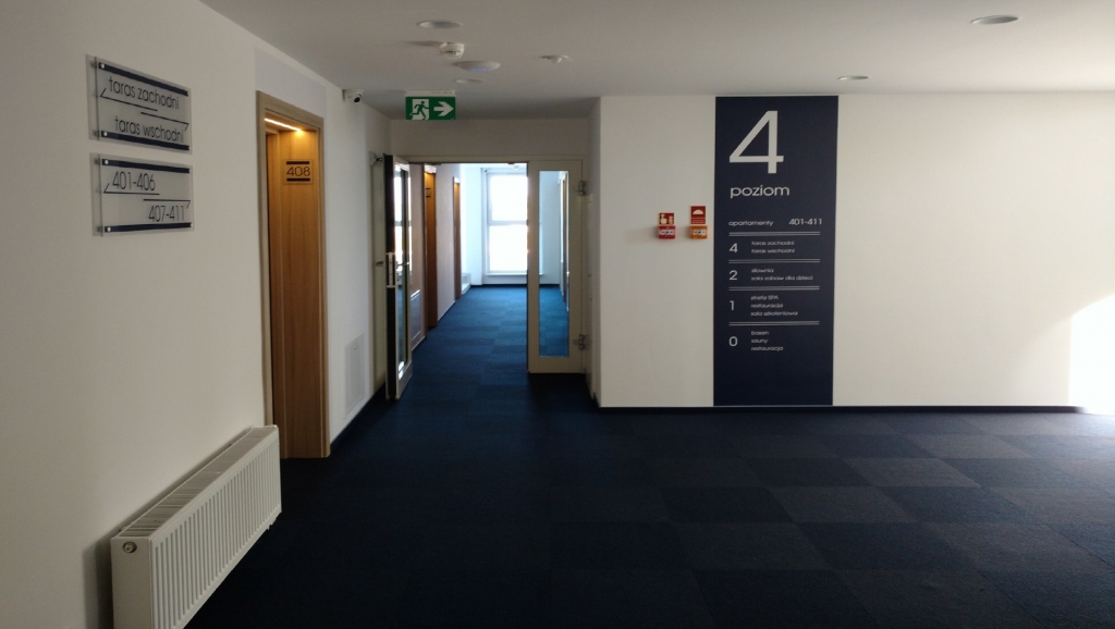 Apartament*401 ma 33 m2. Usytuowany jest na czwartym piętrze, siedmiopiętrowego kompleksu z windą, widokowym lobby, basenem, saunami, strefą cardio, salą zabaw dla dzieci, restauracją, kawiarnią, drink barem, recepcją, oraz miejscem parkingowym.